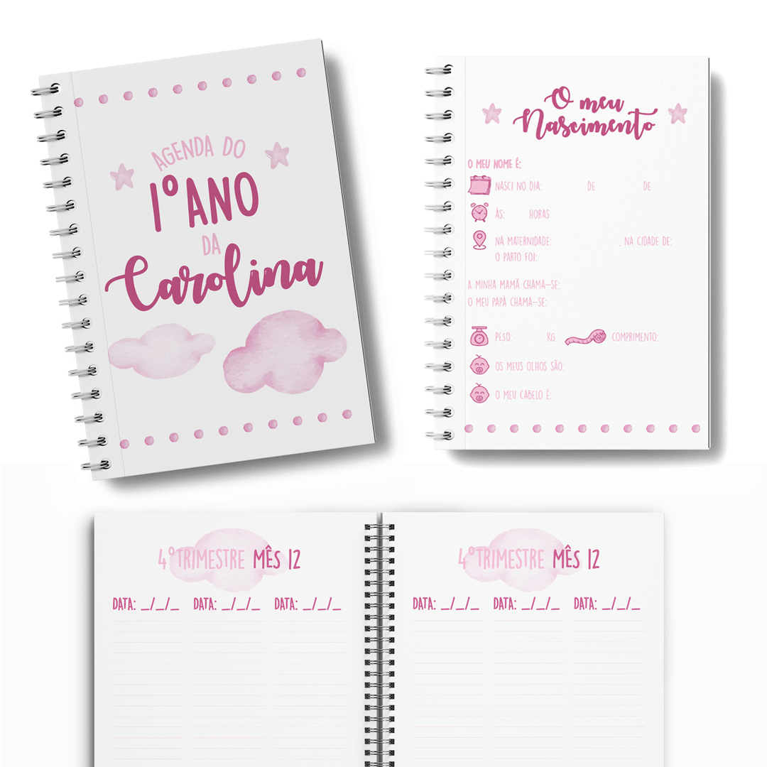 Agenda 1º Ano Bebé (menina) com personalização de nome na capa