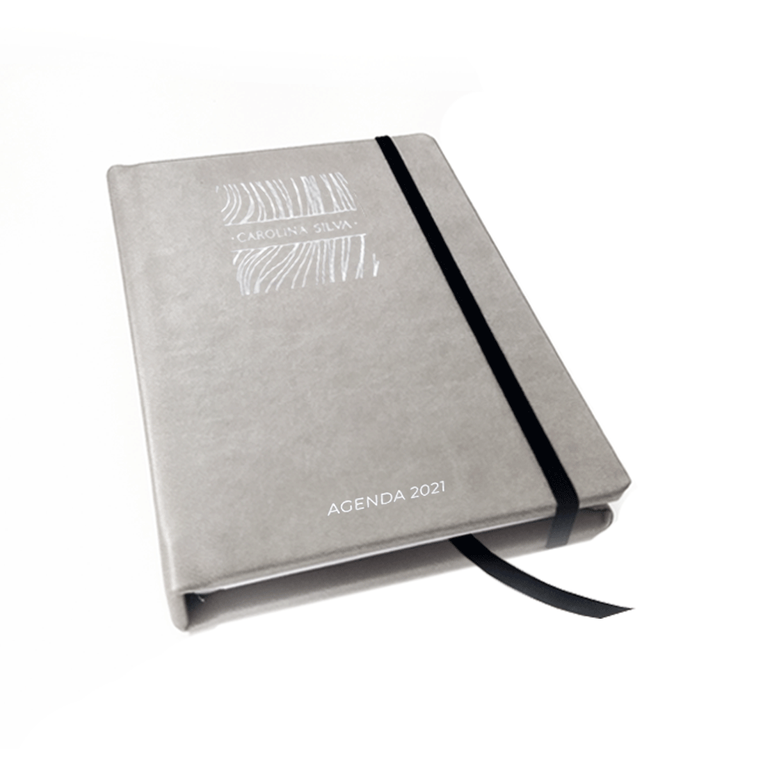 Fita cetim como marcador e elástico para fechar