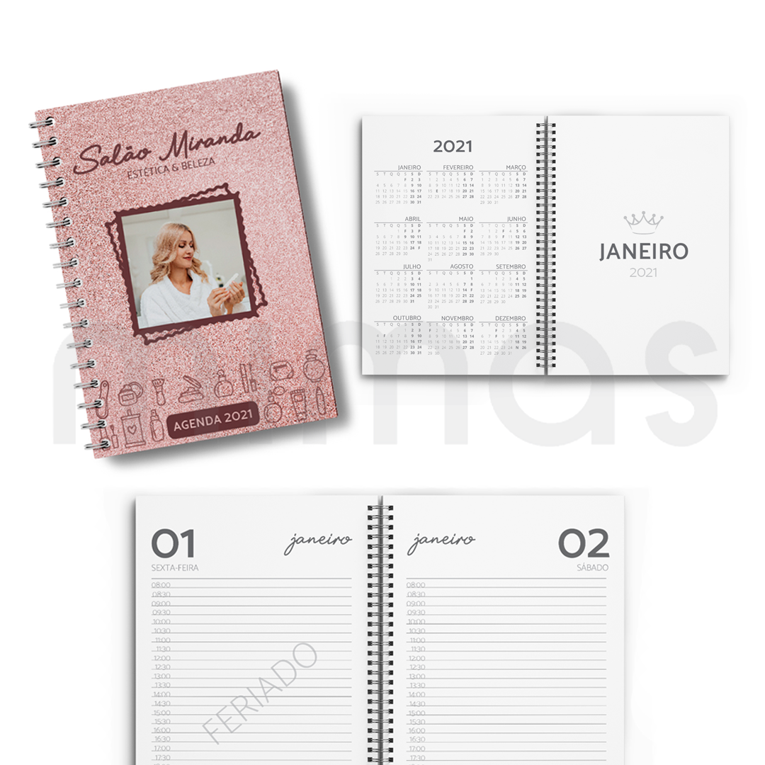 Agenda Diária ESTÉTICA com personalização de nome, fotografia e função na capa
