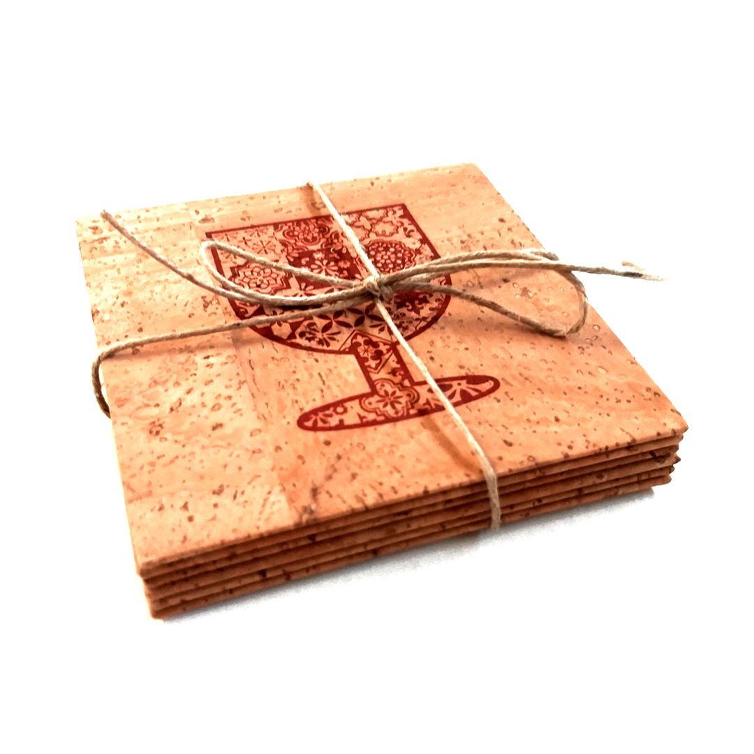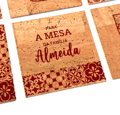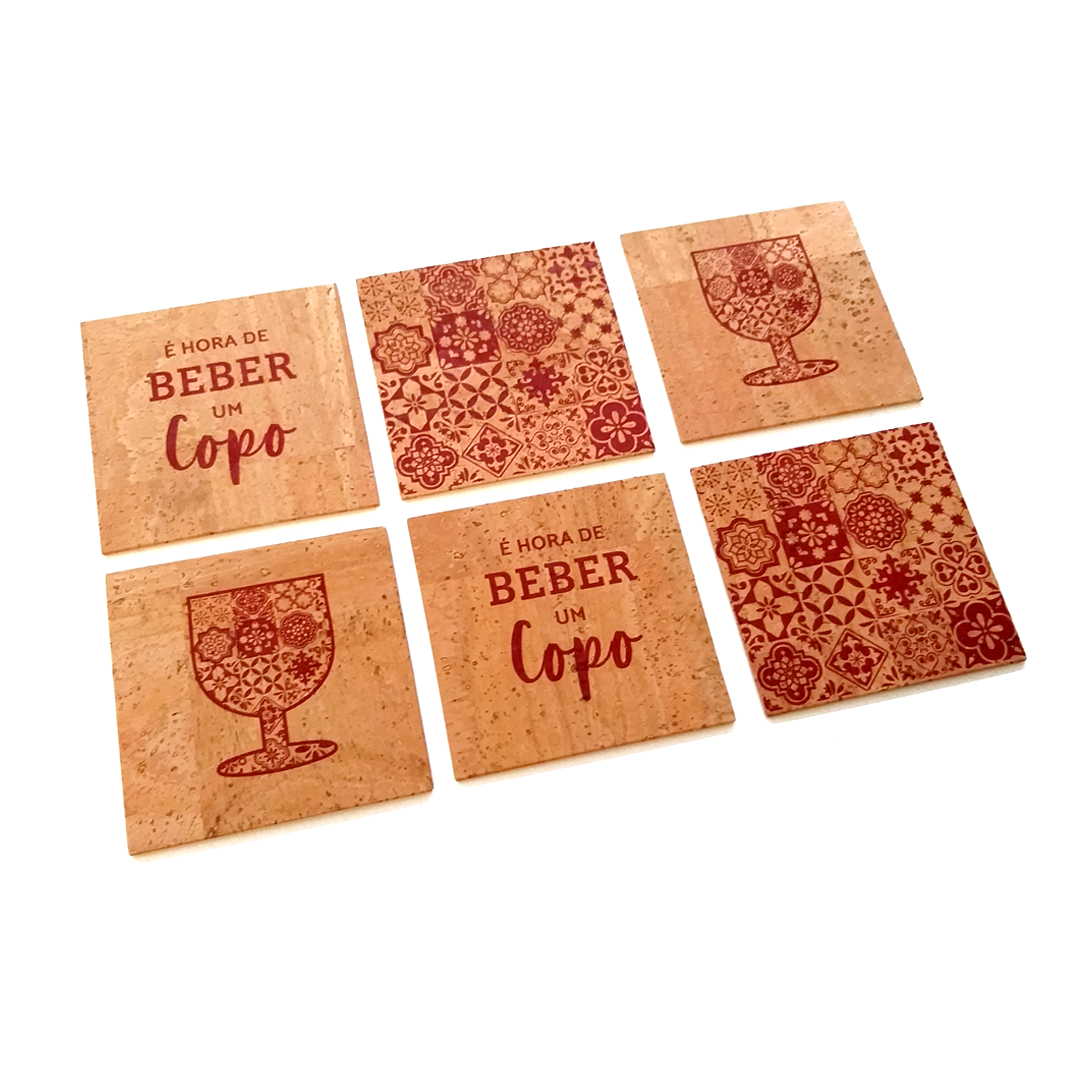 Conjunto de 6 unidades de bases de copos em cortiça personalizadas