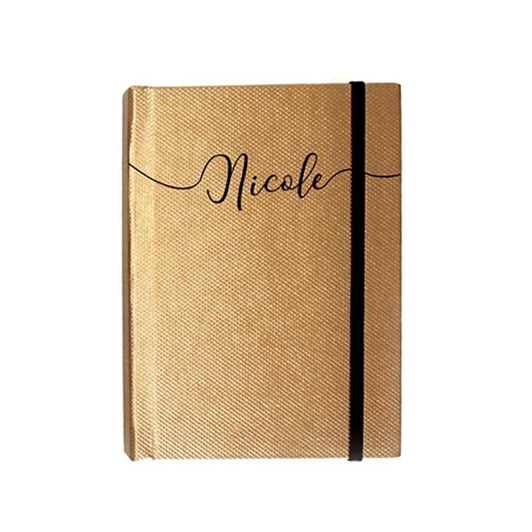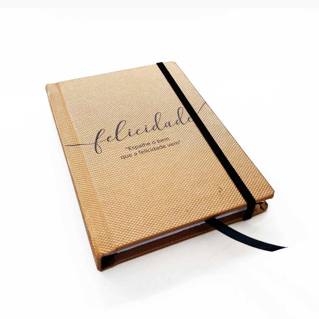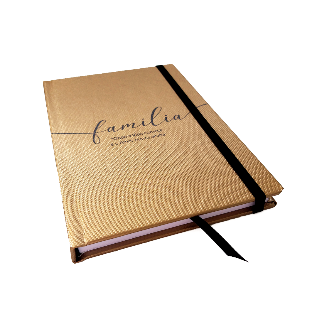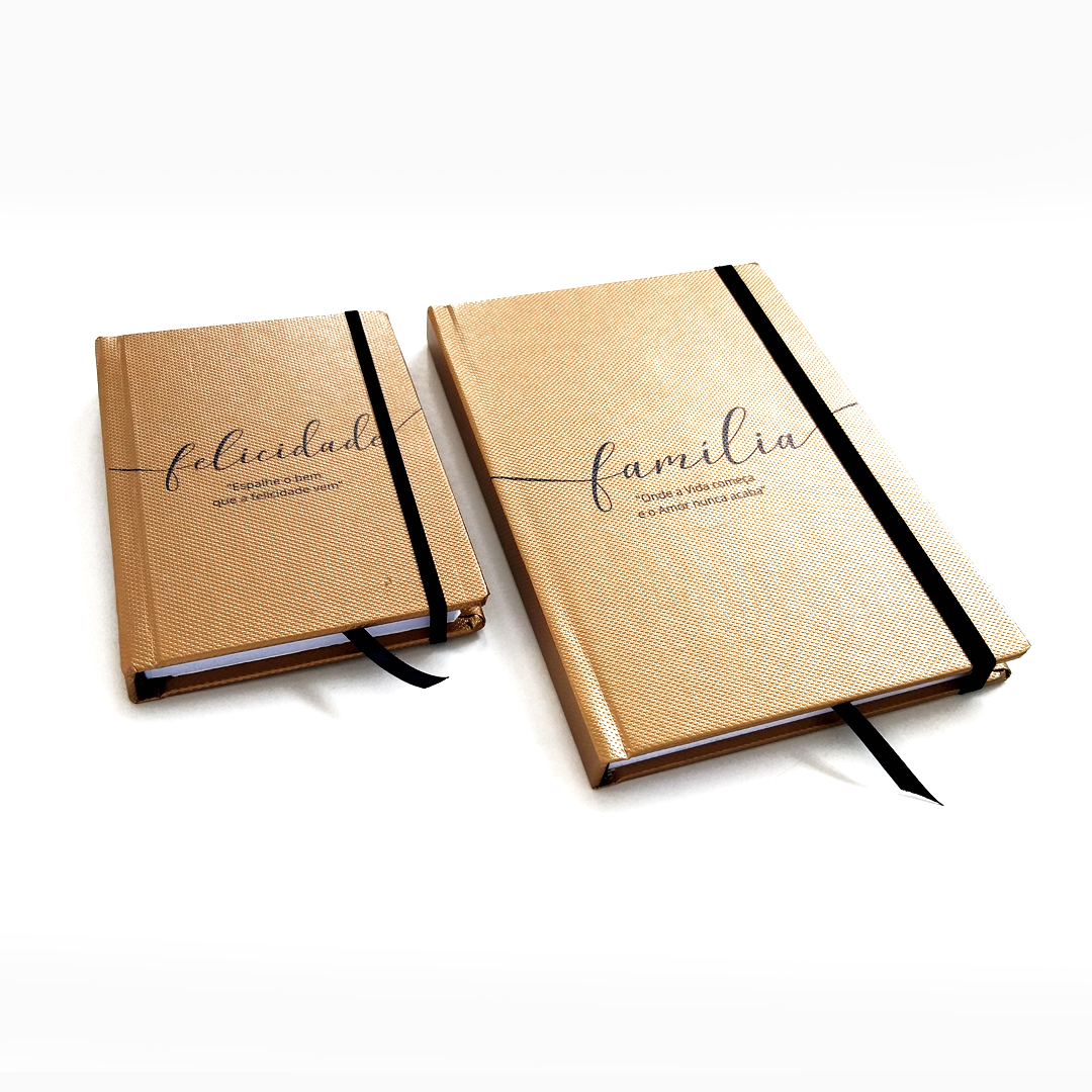 Bloco dourado com personalização na capa