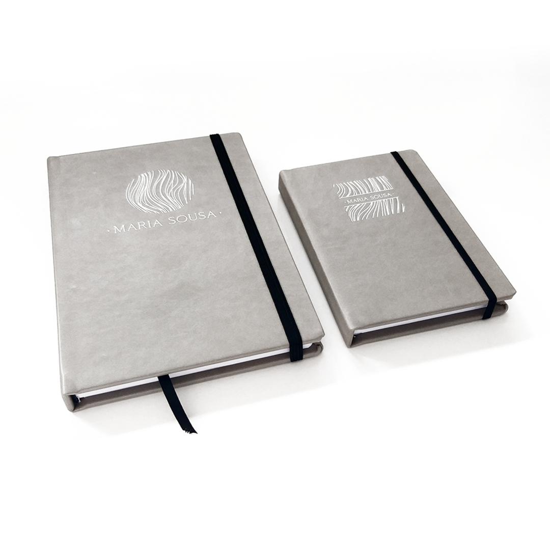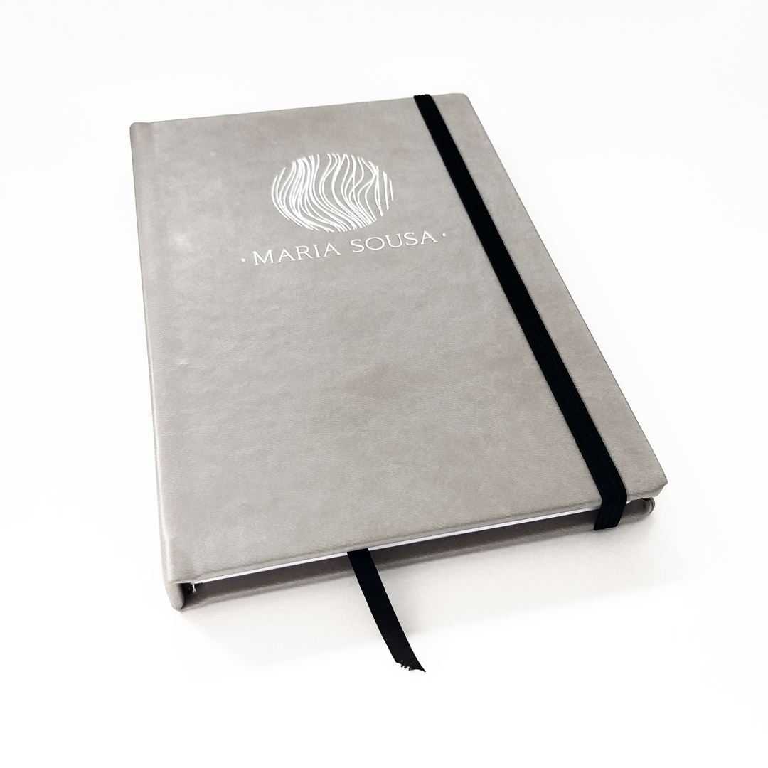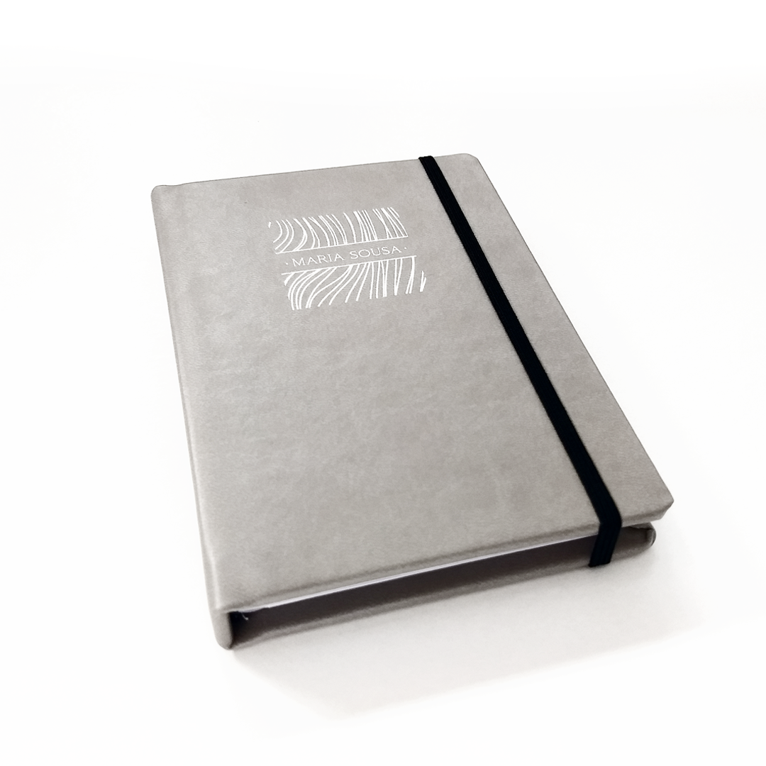 Bloco em pele com personalização de nome na capa
