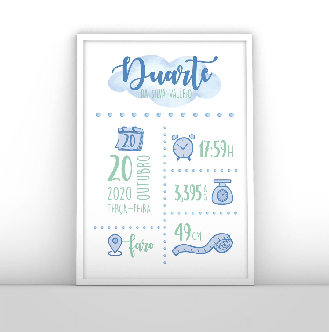 Quadro personalizado com os dados de nascimento do bebé